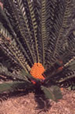 Description: The largest of the American cycads, up to 45' in height and 30" in diameter, with stiff leaves and a flat cross-section. The female cone is the largest cone of any gymnosperm, (both living and extinct) and can be up to 40" long and contain 300 seeds.