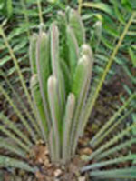 Description: large spectacular cycad with trunks up to 15' in height and 3' in diameter, with glossy green leaves.